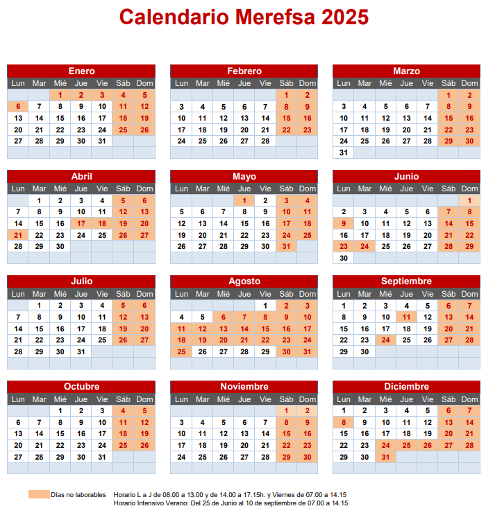 - Cerrado del 24 de Diciembre de 2025 al 6 de Enero de 2026